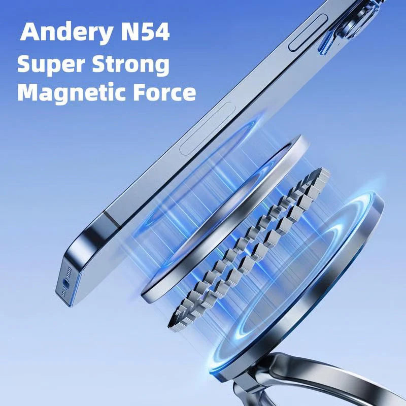 This vacuum magnetic phone stand features a dual-axis foldable ring-shaped metal arm with 180-degree adjust ability and a 360-degree rotating base, allowing you to flexibly adjust it to your desired angle and securely fix it in place. Extensive testing confirms its outstanding stability performance. The innovative folding design reduces its size by 50% when not in use, keeping your workspace clean and tidy.
