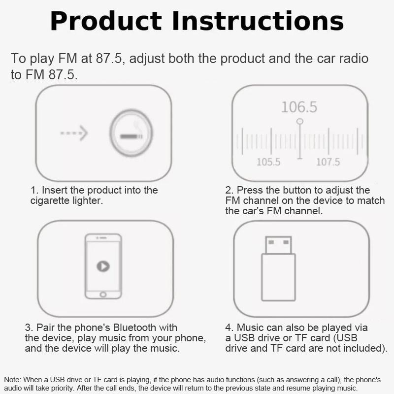 VERSATILE MUSIC PLAYBACK OPTIONS - Play your favorite tunes through multiple methods, including Bluetooth streaming, FM radio, or micro TF card (32g). The built-in FM transmitter broadcasts your music directly to your car's stereo system.